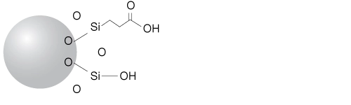A carboxylic acid group is bonded to the surface of the silica particle, giving a weak cation-exchange selectivity.